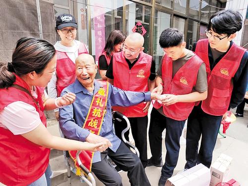 5月30日,石家庄市委宣传部(文明办)、市委社会工作部共同举办走访慰问太行抗战老兵活动。图为志愿者走访慰问鹿泉区牛山村99岁的抗战老兵谢老二(曾用名谢双才)。