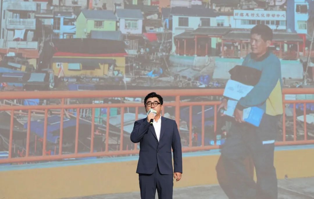 “中国好人”石进全(右)讲述自己坚守海岛为群众送邮件的故事。王楠 摄