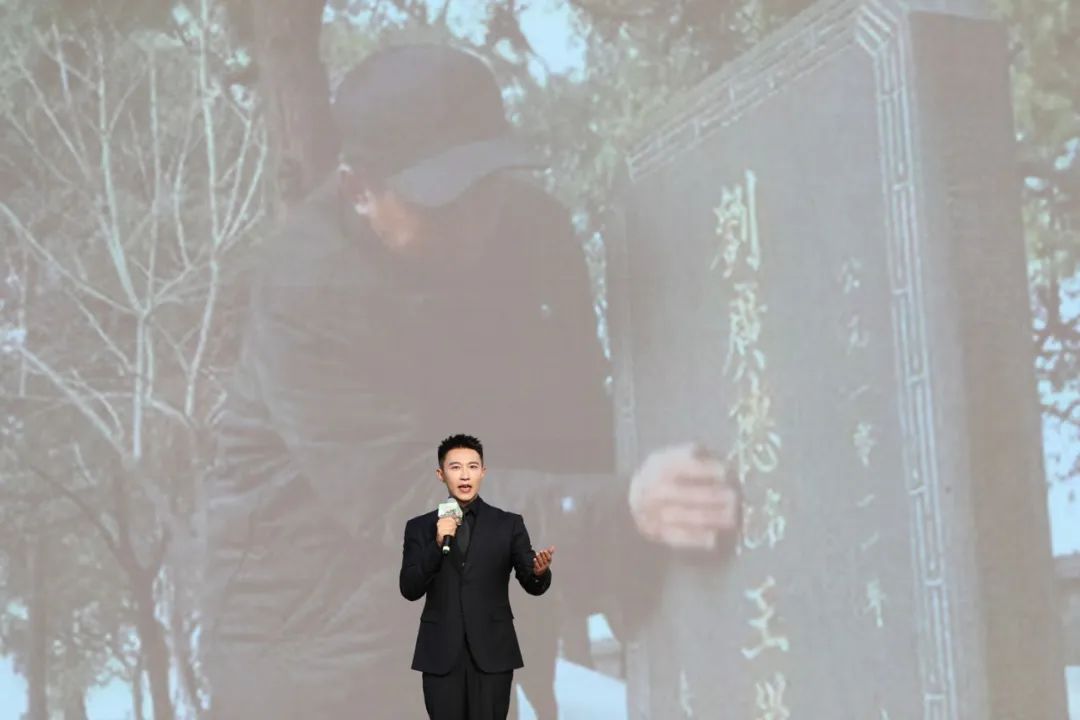 “中国好人”杨智忠(右)讲述自己守护烈士陵园并帮助烈士寻亲的故事。王楠 摄