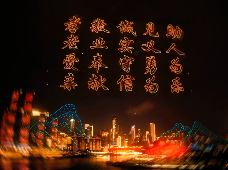 嘉陵江畔,一场大型的无人机表演,让“中国好人”之光点亮了重庆的夜空。凡人微光,温暖四方,这一次,以山城之名,长江之韵,共同礼赞身边好人,汇聚奋进力量!