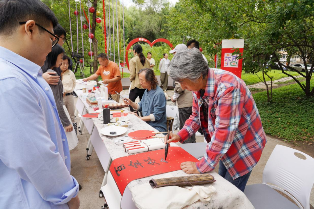 不远处,几位书法家正现场挥毫,在宣纸与团扇上题写“佳偶天成”“永结同心”等吉祥话语,墨香四溢,更添雅意。“这些手写的祝福比现成的礼品更有心意,我们打算把扇子珍藏起来。”新人张女士手持刚刚写好的团扇,脸上洋溢着幸福的笑容。
