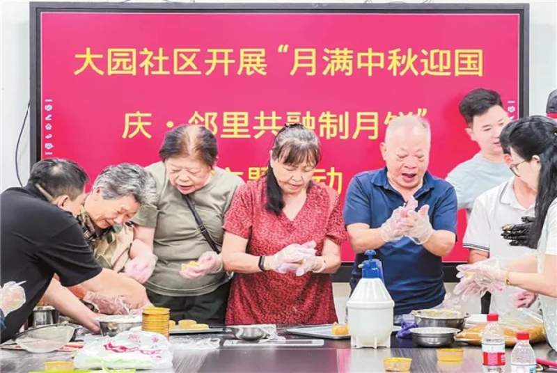 9月28日上午,琼山区凤翔街道大园社区党群服务中心一楼传来欢声笑语,“‘双节’同庆邻里共融制月饼”手工月饼制作活动在此热闹开展。社区老党员、居民和来自海南省机电工程学校的师生代表围坐在一起,拉家常、做月饼,把对节日的祝福裹进香甜的月饼。