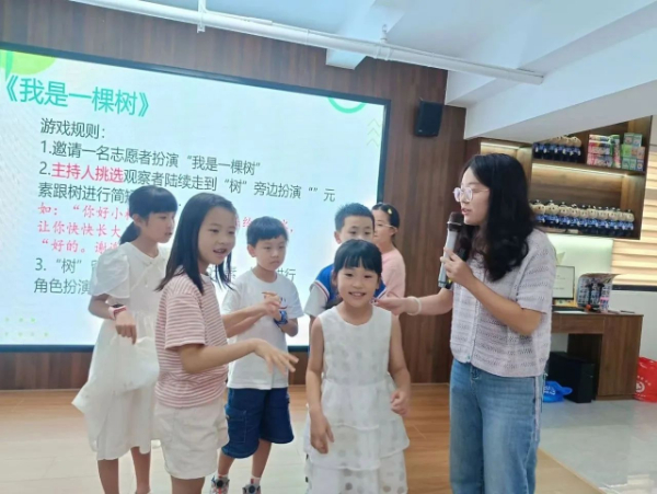心理专业的老师带领孩子们开展心理趣味小游戏。图片来源:宁德文明网