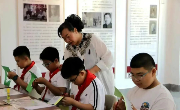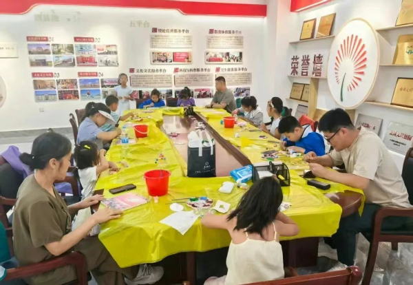 艺术公益课堂绝非单纯的技术传授,中心着力将其打造为思想引领、价值涵育、文化传承的“融合剂”,各活动室墙面上精心展示家风家训、道德模范、红色文化等主题元素,无论是书画创作、手工制作,还是红色诵读,参与者抬眼可见、触手可及,潜移默化中实现思想熏陶。同时将本土非遗项目引入手工课堂,让孩子们在动手实践中,不仅学习手工技艺,更触摸到传统文化的根脉,增强文化认同感和自豪感,使传统非遗文化在新时代焕发新活力。在书画课程中,老师们不仅教授书画技法,更引导学员在笔墨流转间感悟中华优秀传统文化蕴含的哲理与精神;朗诵培训课以诵读红色作品为主,不仅提升学员的语言能力,更注重用声音传递正能量,弘扬主旋律,让艺术成为传递社会主义核心价值观的生动载体。